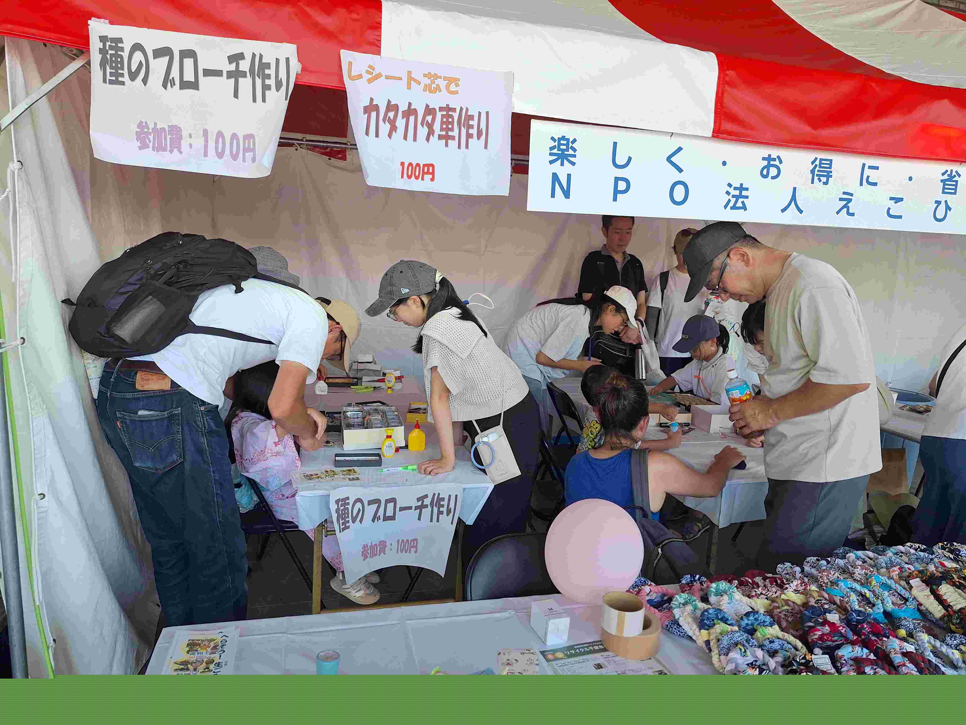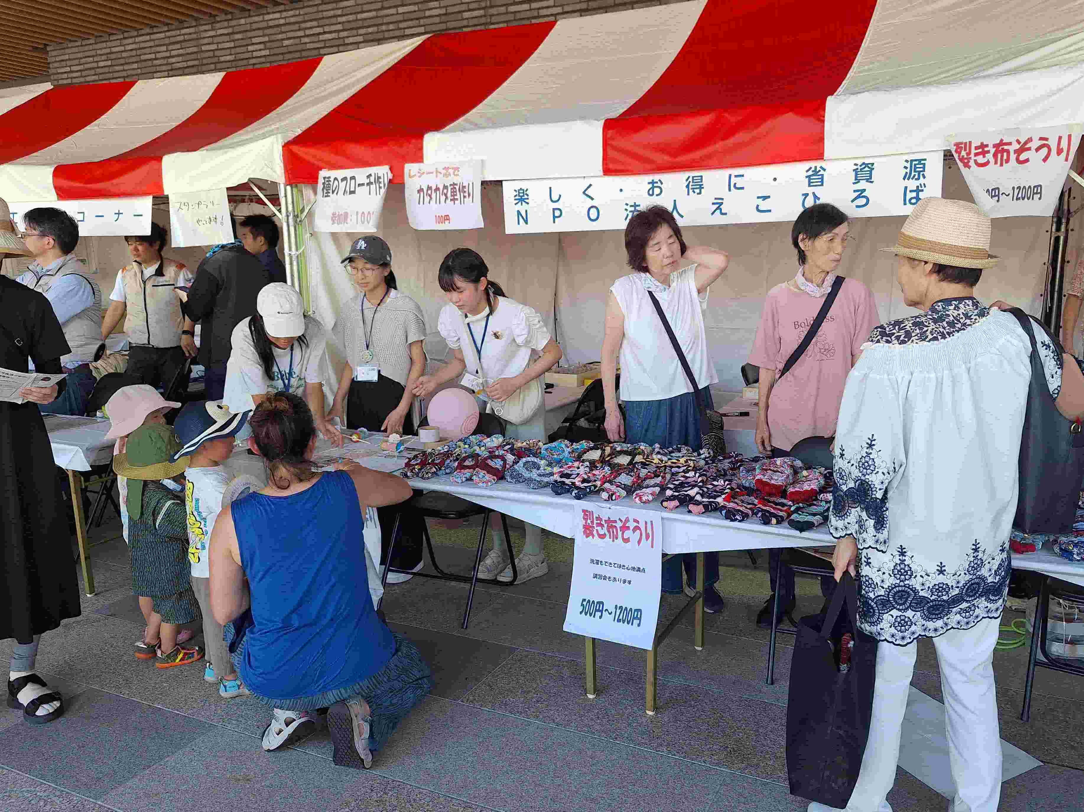 えこひろばも傘の修理、包丁研ぎ、布ぞうりやエコバッグの紹介・販売で参加。多くの参加者で賑わいました。
